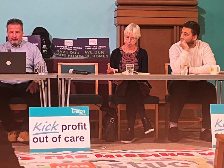 Denise Christie of the Scottish Trade Union Congress reported on trade union efforts to campaign for more resources including better terms and conditions for social care workers. The programme includes training for trade union reps and the setting up of networks for sharing information and for campaigning. An objective is the lobbying of the Scottish Parliament and MSPs.