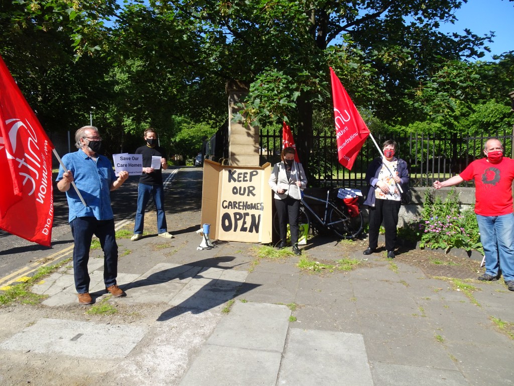 When the board meets at 10am on Tuesday 22nd June, we will stand in socially distanced solidarity with the residents, the care workers and with the deputations to the EIJB from the Council unions and Edinburgh TUC.Assemble for 10am Tuesday 22nd June at Ferrylee, North Junction Street, Edinburgh EH6 6HR. Bring placards and banners. Save our care homes!