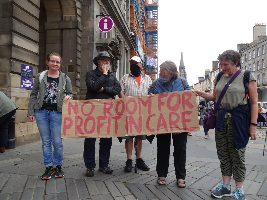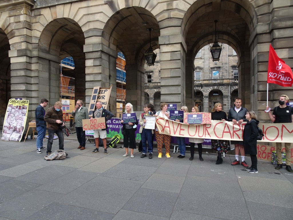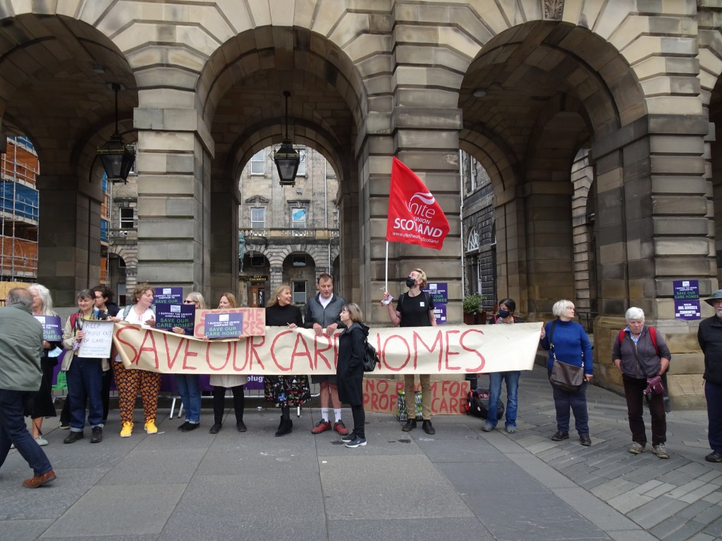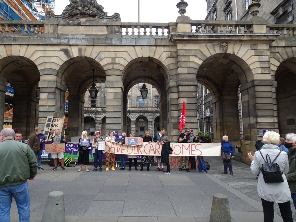 There was a lively Save Our Care Homes protest outside the City Chambers on Tuesday as the Edinburgh Integrated Joint Board met for its August meeting.